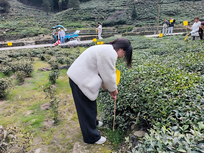 活动以“党建引领、科技兴农”为目标,旨在发挥学生党员的专业知识与实践能力,推动现代农业技术落地乡村。在岭脚村田间,岭脚村党支部书记程永峰和我院柳丽平老师首先向同学们讲解了黏虫黄板的生态防虫原理及使用方法。随后,同学们分为四组,与村民协作完成黄板插种工作,覆盖茶园及蔬菜种植区多亩地。过程中,学生党员和积极分子们认真做好自己的本职工作,旨在专心帮助当地农民,助力农民的茶园更好的生长。