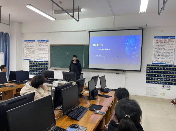 首先,倪展博同学向大家详细介绍了其自主设计的第六版IM通讯协议——IMTPS。倪展博深入浅出地阐述了该协议改版的思考过程,清晰地描绘了协议的通信流程,并重点讲解了设计过程中遇到的难点以及当前的实际应用情况。他的分享展现了软件小组学生扎实的专业基础和优秀的实践能力。
