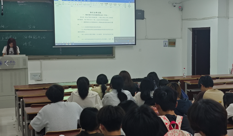 随后,学习委员钱慧宣读了《国家教育考试违规处理办法》中关于考试违纪、作弊的认定及处理办法(节选)。她详细介绍了考试违纪和作弊的具体行为表现,以及相应的处罚措施,让同学们对考试纪律有了清晰的认识。她强调,任何违反考试纪律的行为都将受到严肃处理,希望同学们引以为戒,自觉遵守考试规则。