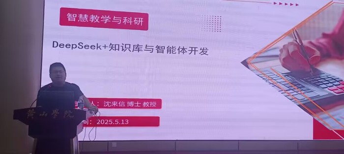 同时,学院邀请沈来信面向毕业生开展DeepSeek智慧教学与科研活动。沈教授介绍DeepSeek功能特点,展示其在文献检索、数据分析等科研环节的应用,帮助毕业生掌握先进科研工具,提升科研效率与创新能力,为其未来深造或科研工作筑牢基础。