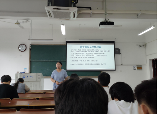 班会伊始,辅导员柳丽平以近期安全案例为切入点,全面讲解端午假期安全要点。在出行安全方面,她提醒同学们选择正规交通方式,警惕黑车陷阱;针对节日饮食,特别强调粽子等黏性食物适量食用,避免肠胃负担,同时警惕野生菌、隔夜食品引发的健康风险;面对假期涉水、出游等活动,她反复强调“防溺水六不准”,要求同学们提高自我保护意识,结伴出行并及时报备行程,出行过程中要注意交通安全、财物等问题。