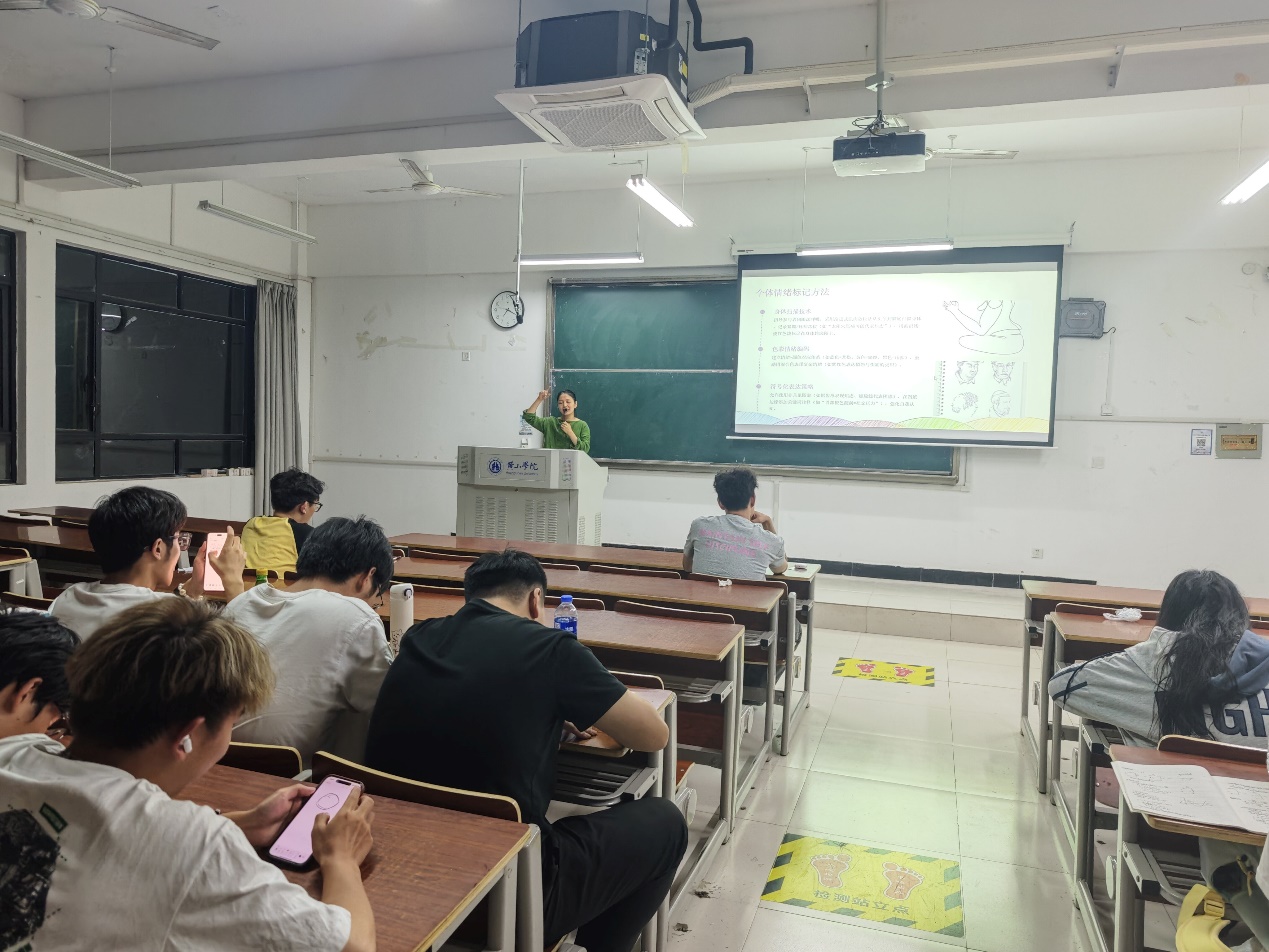 为引导同学们深入认识情绪与身体的内在联系,提升情绪管理能力,5月26日,24计算机专业成功举办“藏在身体里的情绪信号”主题团体辅导活动。此次活动以“认识情绪、觉察情绪、感受身体、情绪流经”为主线,通过形式多样的互动环节,为同学们带来一场别开生面的探索之旅。活动伊始,在“身体情绪地图绘制”环节中,同学们根据自身经历,用色彩和线条在纸上勾勒出不同情绪在身体各部位的表现。有人在绘制愤怒情绪时,着重描绘了紧绷的肩膀与发烫的脸颊;有人在表达焦虑时,将胃部的不适用灰暗色调呈现。通过这种直观的方式,大家开始意识到,情绪不仅仅是心理感受,还会在身体上留下独特印记。