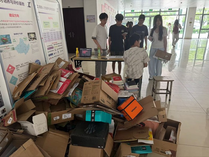 太阳成集团tyc9728学生会在文峰楼大厅举办“旧书回收、图书共享”活动。此次活动得到了很多同学的响应,大家纷纷捐出自己的闲置图书,志愿者们详细记录大家捐赠书籍的名称、数量、类别等内容,确保信息准确无误。此次活动回收旧书上百册,包括教辅、文学作品、期刊杂志等。