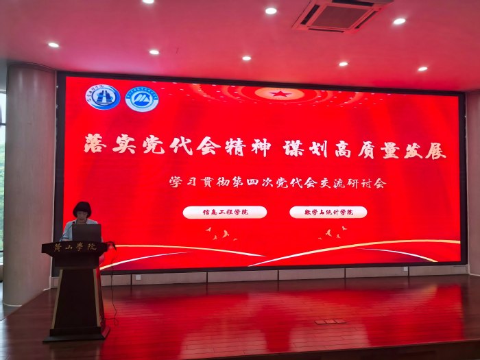 会议首先聚焦于学校第四次党代会精神的深入学习与研讨交流。数学与统计学院副院长梁文娟教授率先发言,立足学院专业布局与发展规划,详细阐述了对党代会报告中关于学科建设、专业优化和人才培养部署的理解与思考,提出了学院未来发展的构想。