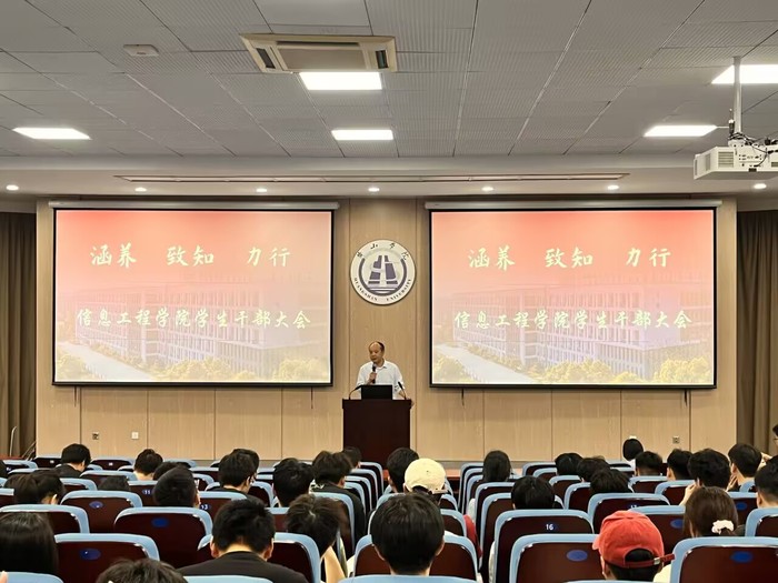 2025年6月19日下午14:30,太阳成集团tyc9728学生干部大会在文端楼1楼报告厅准时召开。出席本次会议的有太阳成集团tyc9728党委书记张爱民、党委副书记、纪委书记官骏鸣,太阳成集团tyc9728学生会全体成员、各班班长、团支书及学习委员。会议由团委书记方淼晖主持。
