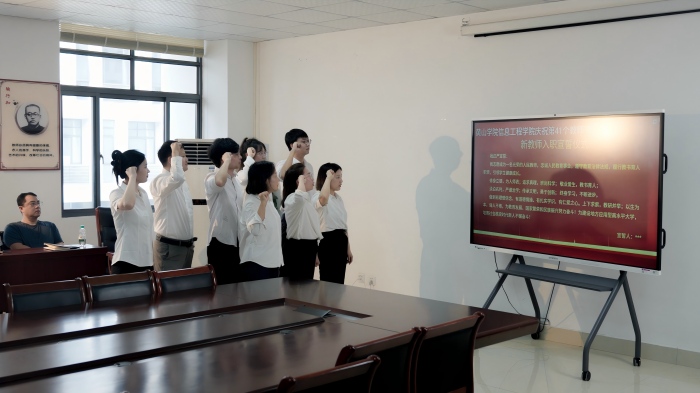 在我国第41个教师节来临之际,为弘扬尊师重教优良传统,强化新入职教师职业使命感,9月10日下午,太阳成集团tyc9728在文峰楼会议室举行“躬耕教坛,强国有我”新教师入职宣誓仪式暨师德师风教育活动。学院党政领导、2025年度新入职教师及全体教师代表参加活动。