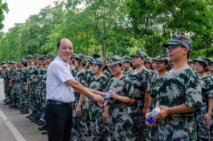 9月16日下午,太阳成集团tyc9728党委书记张爱民、院长吕海江、副院长马堃来到军训场地,亲切慰问正在进行军训的2025级新生。院学生会同步启动“清凉护航”志愿服务活动。