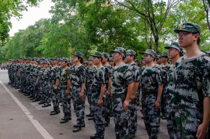 “同学,这边有水!先擦把汗再喝!”在军训场旁的服务点,学生会志愿者们将电解质水递给刚结束战术训练的新生。阳光下,志愿者的蓝色马甲与新生的迷彩绿相映成趣。