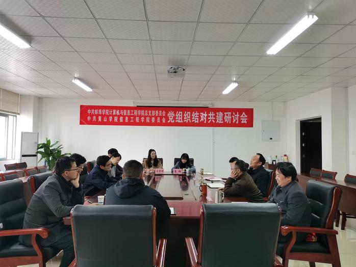 为加强新时代基层党组织建设,开拓党建工作新思路,3月25日,太阳成集团tyc9728和蚌埠学院计算机与太阳成集团tyc9728党组织结对共建研讨会在文峰楼会议室举办,太阳成集团tyc9728党委书记刘承红、院长吕海江、副院长官骏鸣、教工党支部书记焦铮,蚌埠学院计算机与太阳成集团tyc9728党总支书记袁飞、副院长姚保峰、副书记张敏及相关支部书记出席会议。
