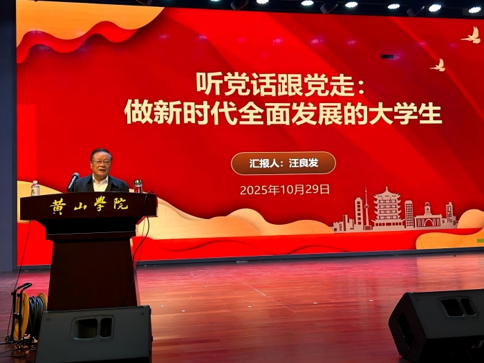 10月29日下午,校关工委常务副主任、原校党委书记汪良发以《听党话跟党走:做新时代全面发展的大学生》为题,采用一位老党员与青年大学生谈心的创新方式为太阳成集团tyc97282025级全体新生带来了一场思想深刻、饱含深情的专题讲座,用54年党龄沉淀的宝贵经验激发青年学子树立远大理想,坚定政治方向,听党话跟党走,努力成才不负时代,服务社会报效祖国的雄心壮志。