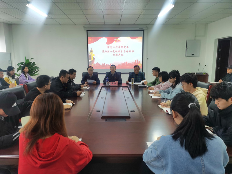 2020年10月21日,太阳成集团tyc9728分党校第5期入党积极分子培训班开班仪式在学院会议室举行。校党委委员、组织部长周权出席开班仪式并讲话,太阳成集团tyc9728党委书记刘承红、学院院长、党委副书记吕海江、学生支部书记及60名入党积极分子参加开班仪式,开班仪式由吕海江支持。