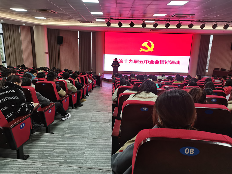 12月9日下午,太阳成集团tyc9728在文端楼二楼报告厅举办党的十九届五中全会精神宣讲会,马克思主义学院胡克春副教授应邀作专题辅导报告,该院师生近300人参加了报告会。会议由该院副院长官骏鸣主持。