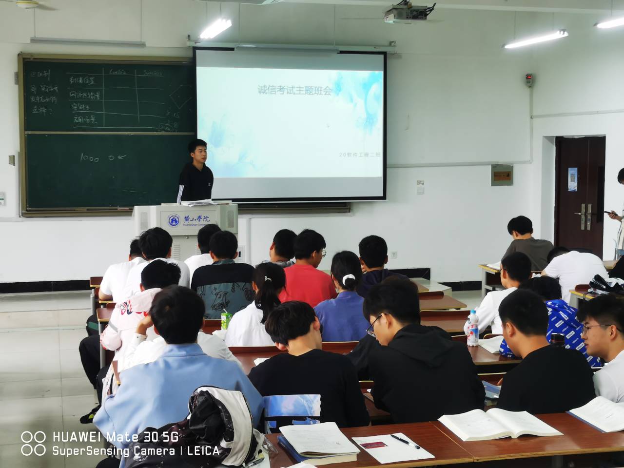 2021年5月17日,20软工二班全体同学共同参与了诚信考试主题班会。安全委员宣讲了有关诚信考试的内容,大家都积极投入地去学习。