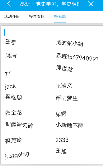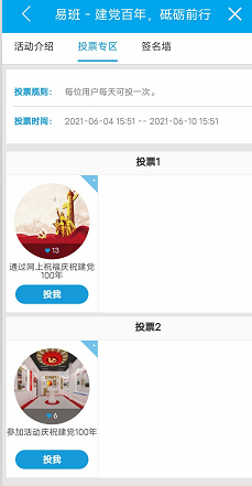 在辅导员的带领下,组织委员和宣传委员在易班搭建了两个轻应用,分别以“党史学习”、“庆祝建党100周年”为主题,同学们积极踊跃参加,通过认真学习党史,能让我们从党发展壮大的历程中汲取养分和智慧。