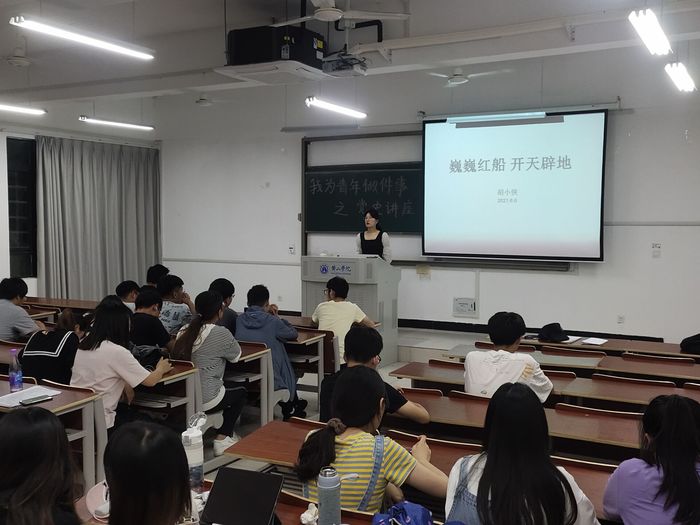 此次讲座围绕着中共一大与红船精神、红船精神是中华民族的的宝贵精神财富、继承发扬红船精神这三个部分来展开。此次讲座,胡小侠引用了精准而具有说服力的数字材料带着同学们回顾历史,引经据典的讲解,深入浅出地讲述了红船精神,赢得了在场同学的阵阵掌声。