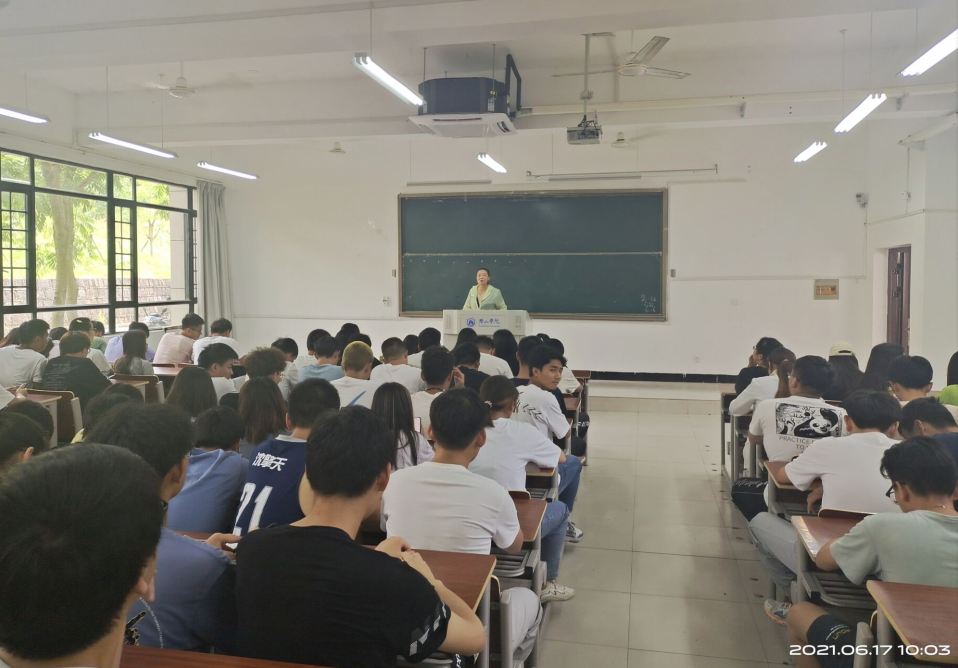2021年6月17日星期四,上午十点19软件工程一班全体同学在教室2206举行有关学期末事务的相关说明。班会辅导员柳丽平主持。