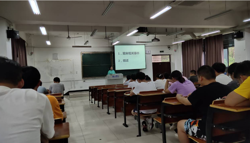 班会开始,辅导员柳丽平讲解了根据学校的整体安排,对部分学生宿舍进行搬迁的方案,说明了班级搬迁的规则,希望同学们认真遵守。同时督促同学们协商好确定好宿舍的人员配置,为接下来的宿舍生活负责。会议中辅导员劝诫大家临近考试更要努力学习,争取考到好的成绩,顺利步入大三,开启新的学习阶段。