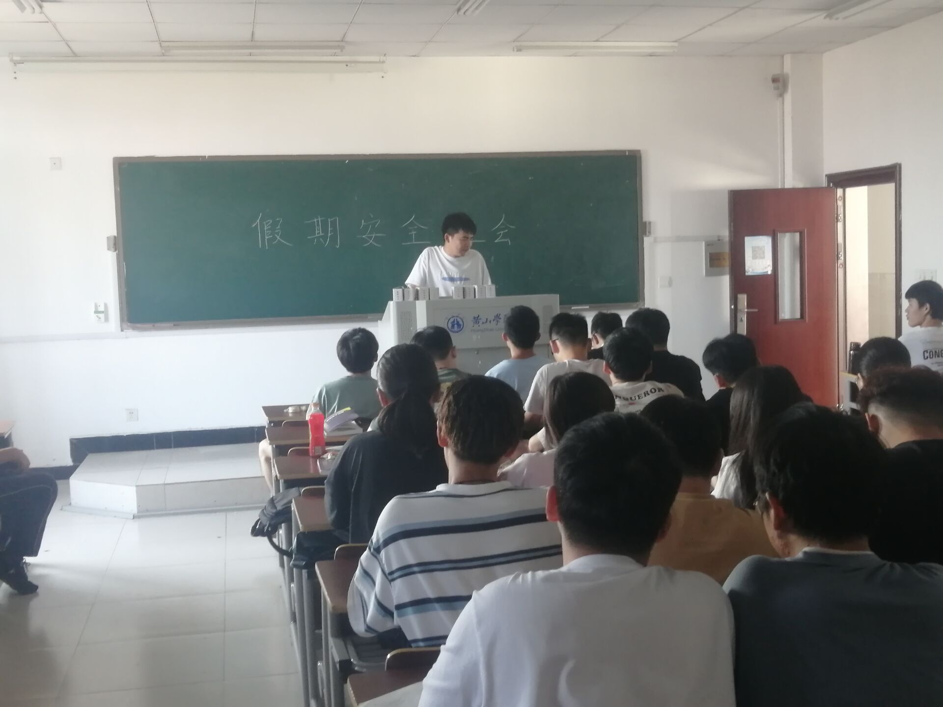 提醒大家假期注意交通安全、人身财产安全、注意防范溺水、加强食品安全意识、提高预防诈骗的能力、注意遵守宿舍管理规定、营造安全的网络环境。让同学们通过自我思考,自我剖析,从而达到提高同学们安全防范能力。
