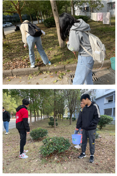 今天是2021年10月25日,21光信息班在9728太阳集团率水校区28栋附近进行公益劳动。