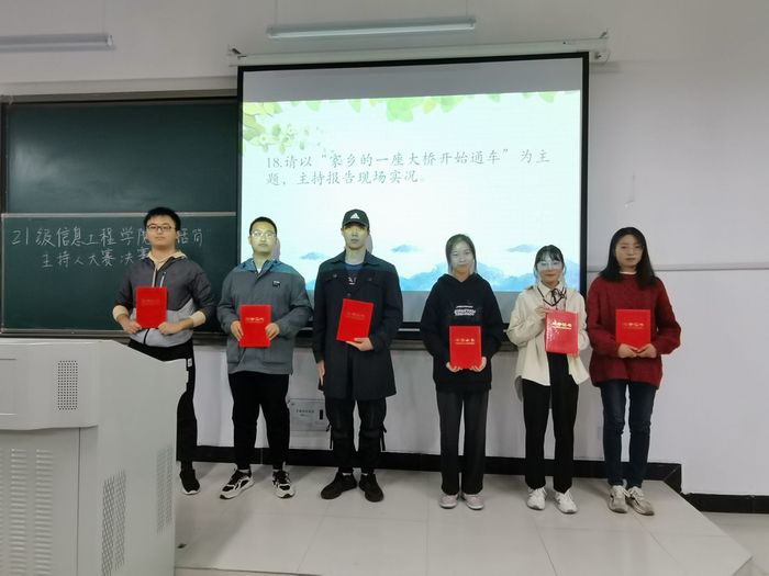 经过初赛,共有10名同学进入决赛。决赛包括词语成句、随机朗诵和模拟主持三个评分环节,为了比赛的公平性与权威性,决赛也特别邀请了专业评委进行评审打分。每位选手都以最动人的声音和最亢奋的精神状态给评委和观众带们来听觉与视觉上的精彩盛宴。现场的观众掌声不断,各班的啦啦队也是激动的连声叫好。经过激烈角逐,21电子2班的沈浩然夺得冠军,二等奖获得者是来自21光信息的马新志和21计算机二班的蔡烨凡,21计算机一班孙华浩、21软件一班史梦男和 21光信息马晴儿分获三等奖。除此之外,其余参赛者的精彩表现也是获得了大家的一致好评。