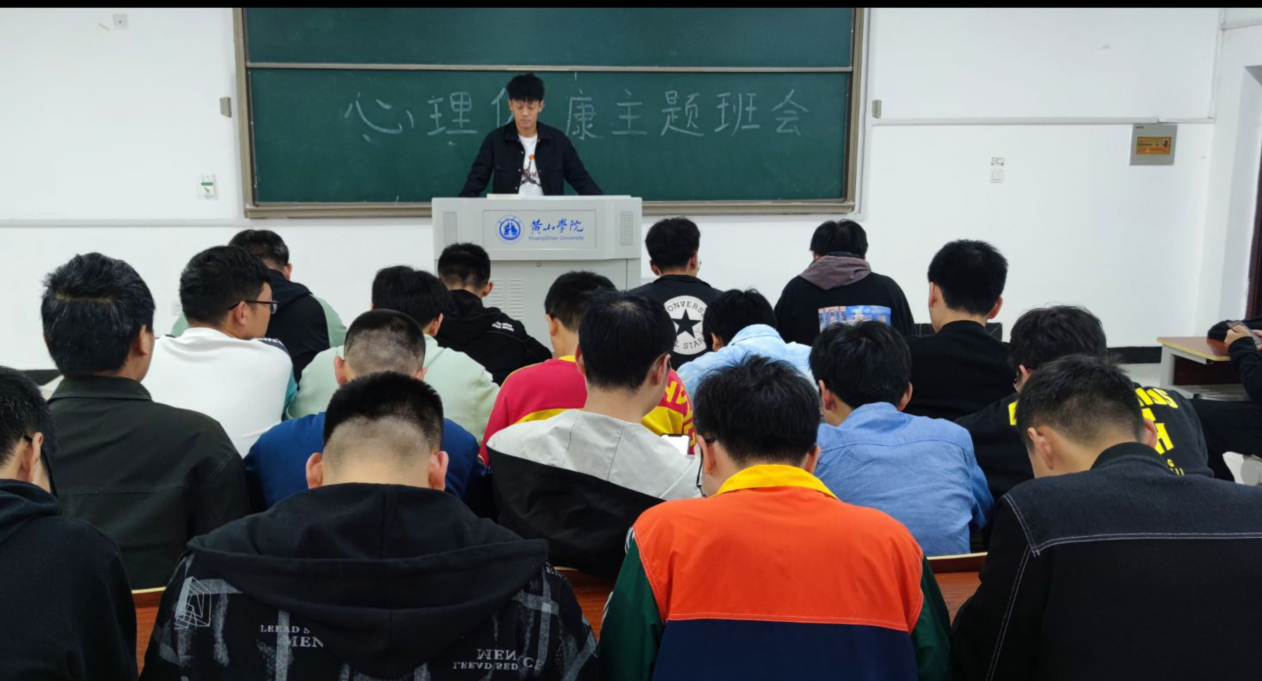 本次班会以线下的形式进行,由心理委员韩博文主持进行。主持人就自尊心、自我认知、人际关系等多方面引导同学们进行自我心理健康评估并做出调整意见。随后由同学们互相讨论,并为自我心理问题的解决建言献策。