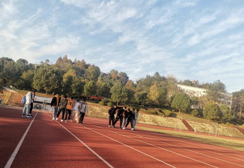 首先,辅导员胡小侠带领我们在操场集合,让我们四个人一组,玩四人五足的游戏,看哪个队伍跑完规定路程且时间最短,同学们争先恐后的表现自己,同学们玩的不亦乐乎。第二个游戏万里长城永不倒,我们男生围成一个圈,女生在里面也围成一个小圈,然后同学之间互相坐在另外一个同学的大腿上面,依次坐了起来,坚持10秒。这个游戏让同学们建立了互相信任和团结。第三个游戏是剪刀石头布。这个游戏让我们更加有凝聚力,更加了解彼此。第四个游戏是手写你最困扰的三件事。