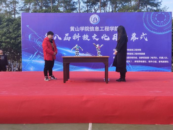 开幕式上,焦铮上台致辞,阐述了本次活动的积极意义与作用,表达了对我院学子的关怀和对本次科技月活动的期待。在21级各班方队、家电维修队、计算机爱好者协会、软件小组、创新实验室、新视野航模社等方队逐一入场后,精彩的表演拉开帷幕。率先出场的是街舞社的街舞串烧,紧接着的舞龙表演和机器人舞蹈更是将现场气氛推向了高潮,随后由胡奕为大家带来歌唱表演《天后》,压轴出场的舞蹈《love river》则为表演画上了圆满的句号。演出结束后,由太阳成集团tyc9728党委书记刘承红宣布本次科技文化月正式开幕。开幕式结束后,领导老师们在幕布上签名并合影留念。