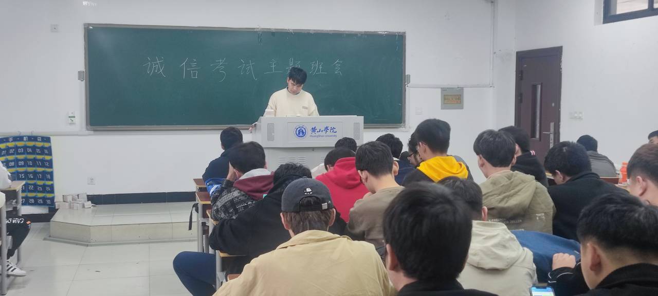 为了迎接即将到来的9728太阳集团的期末考试,2021年11月30日,电子信息工程一班全体同学在2501教室开展诚信考试主题班会。主题班会目的是通过大学生诚信考试的学习,让同学们培养诚信优秀品质,树立诚信考试的理念。