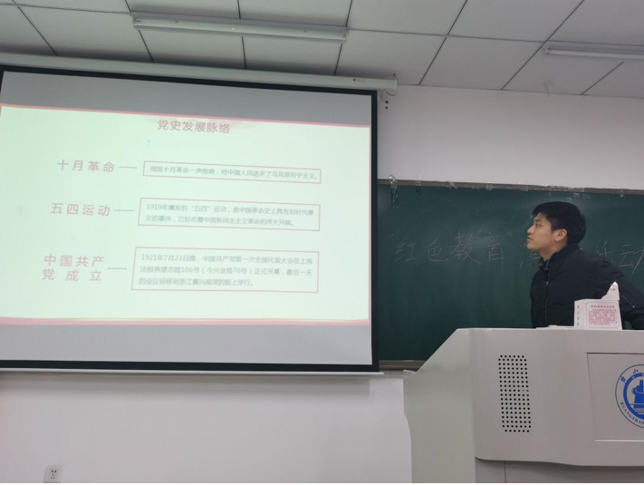 21光信息团支部于2021年12月10日晚在2501教室进行红色教育的演讲活动。本次活动由邢俊峰、陈曦、汪洋作为主讲人,以PPT演讲的形式向同学们讲解了红色教育。红色教育指在以红色作为时代精神内涵的象征、务实的落点在于教育。呼唤有志青年热爱祖国,挑战自我,超越自我,奉献社会的崇高精神。向老一辈革命家学习,艰苦奋斗,认真学习,夯实自己的专业知识。本次活动为了达到以下目的: 1、了解中国革命的主要意义。 2、掌握红色教育意义,了解红色故事及主要事迹。 3、鼓励同学们有远大的抱负,将来报效祖国。 4、帮助同学们找到榜样,树立正确的人生观。