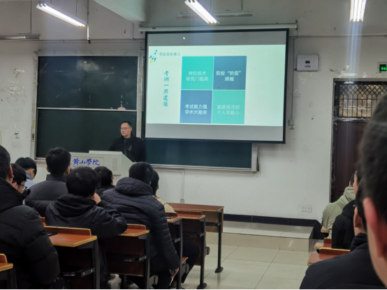 2021年12月19日下午四点,张坤老师在文渊楼1105召开了一场关于计算机专业的考研讲座。20计算机专业全体同学、软件兴趣小组成员积极参加了此次专题讲座。本次讲座主要围绕着计算机类专业考研与不考研的利弊进行讨论。