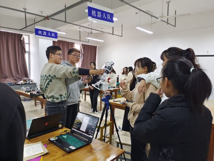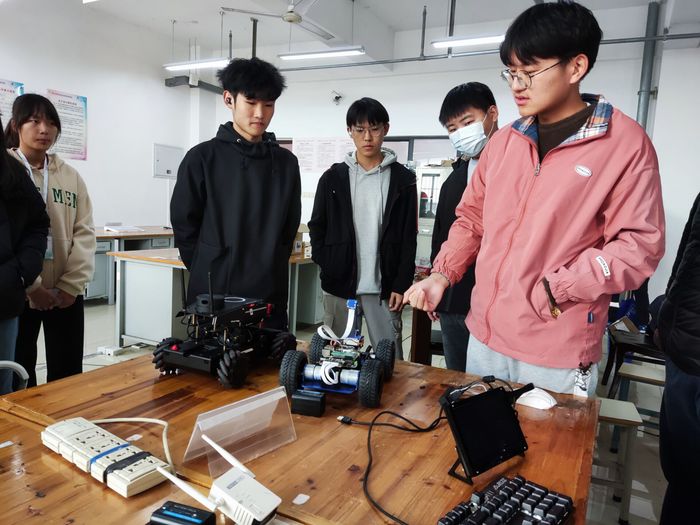 同学们本次参观的实验室有飞思卡尔实验室、机器人实验室和电子实验室。飞思卡尔实验室致力于智能车的创造,负责人向同学们介绍了智能车的构成,展示了赛道上正在运行的智能车。机器人实验室负责机器人的研发,负责人介绍了可以人脸识别的短跑机器人,并且让同学们和短跑机器人进行了亲切友好的互动。电子实验室的核心工作是芯片的制作,包括给芯片编写程序和运行,负责人向同学们展示了机械臂和两辆智能小车,随后还带领同学们去参观了智能小车的运行轨道,让同学们可以直观地看到智能小车在轨道上的运行。
