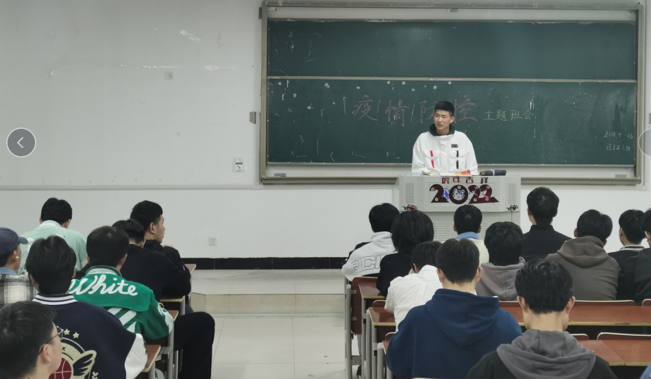 近期,新冠疫情形势严峻,多地本土确诊病例和无症状感染者数量持续增加。未来落实上级和属地关于做好疫情防控工作的有关要求,切实做好我校的疫情防控工作,确保校园安全稳定,在前几天辅导员的疫情防控主题班会之后,为了提高大家的防疫意识,班长于2022年3月18日在2409主持召开疫情防控主题班会。