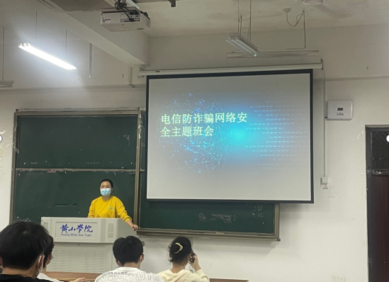 2022年4月12日,辅导员柳丽平老师在1205开展了电信防诈骗网络安全主题班会。
