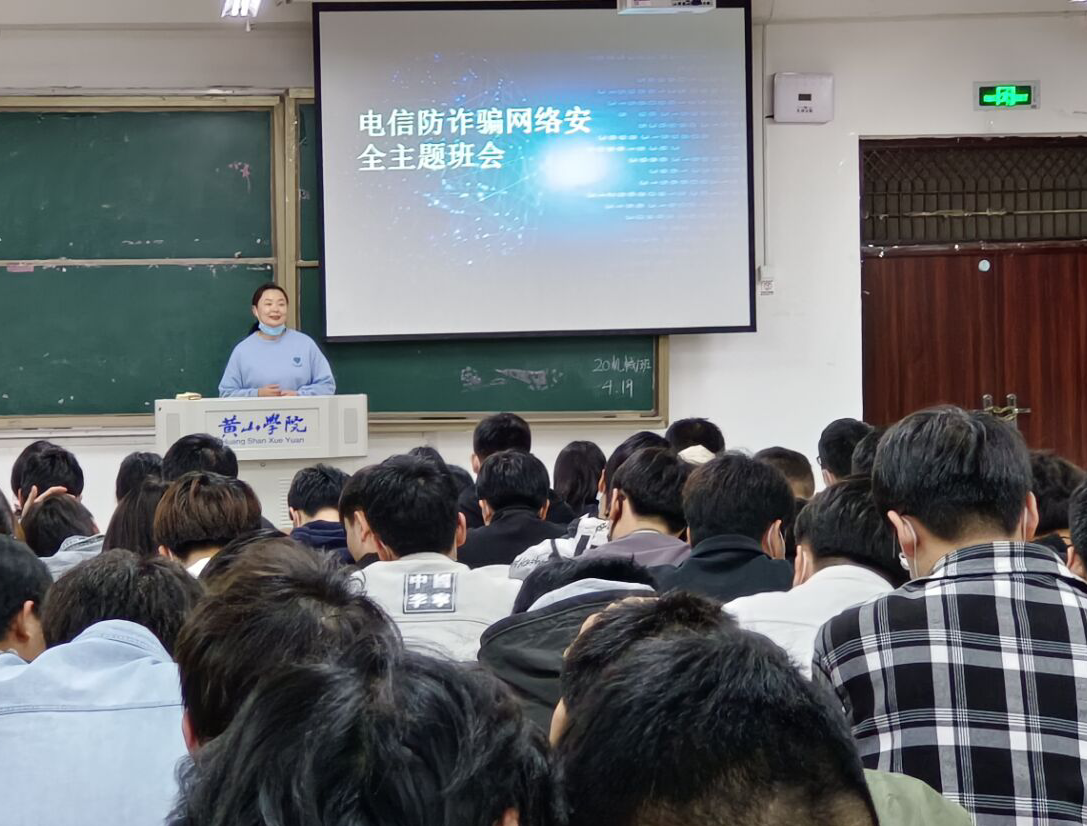 此次班会从什么是电信网络诈骗、针对学生常见的诈骗形式、从网络诈骗案例剖析和如何防范电信网络诈骗”四个方面引导学生学习防诈骗的相关内容,让同学们了解电信诈骗案件的行骗手段和作案特点。