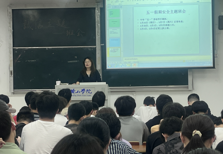会议的开始,导员向同学们具体传达了学校对此次假期的安排:今年“五一”劳动节不调休,公布了具体上课和休息的时间。会议中,导员也对网络安全、消防安全、宿舍安全、防盗窃、自我保护等日常生活中各个方面的假期安全问题进行了详细说明,同学们就自己所了解的安全知识及切身体会进行了深切交流。最后,导员就班会讨论的内容进行了总结,希望同学们严格遵守学校规定,确保假期自身安全。