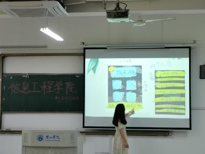 本次大赛共76人参与,通过线上提交作品,经过筛选最终12份优秀作品进入决赛。参赛人员通过PPT展示,分别从产品图标、目的、作用、意义等方面向大家展示了自行设计的APP。设计理念多是从学生角度出发,从身边实际出发,具有实际性,创新性。评委组依次从参赛作品的主题、设计理念、效果几方面评分,最终20环境艺术设计二班王欣的《掌上黄院》获得一等奖,19数字媒体王涵的《食趣》和20计算机二班虞文丽的《徽旅》获得二等奖,21光信息张珍妮的《基于云平台的古徽州建筑安全预警系统》、21光信息马晴儿的《互助星》、21生物科学班刘丹丹的《糖糖星球》获得三等奖。