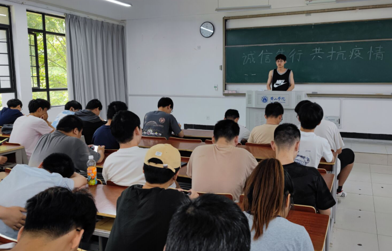 此次班会以线下的形式进行,班长杨克成主持了此次班会。旨在解读国家资助政策,使同学们了解国家资助政策明细。在收到国家资助政策的同时,我们也要增强法律意识,遵守政策条件,尤其是在疫情严重的当下。恪守诚信是每个人应当具有的生存和发展理念之一,做一名城实的践行者,对国家给予的各种物质资助,我们应当倍加珍惜,用自己优秀的表现来回报社会。