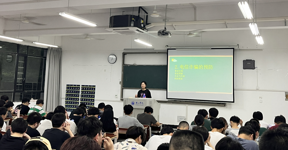 首先我们讲的是电信诈骗的预防,辅导员重点讲解了近期高发的电信诈骗的类型和特点以及典型案例,通过案例的讲解,让同学们清晰地认识到诈骗的特点,提高警惕。回归到今年的防范电信诈骗宣传主题“10个凡是”,再次提醒同学们提高警惕,做到 “不点、不怕、不信、不贪、不转帐”,遇有异常及时报警。