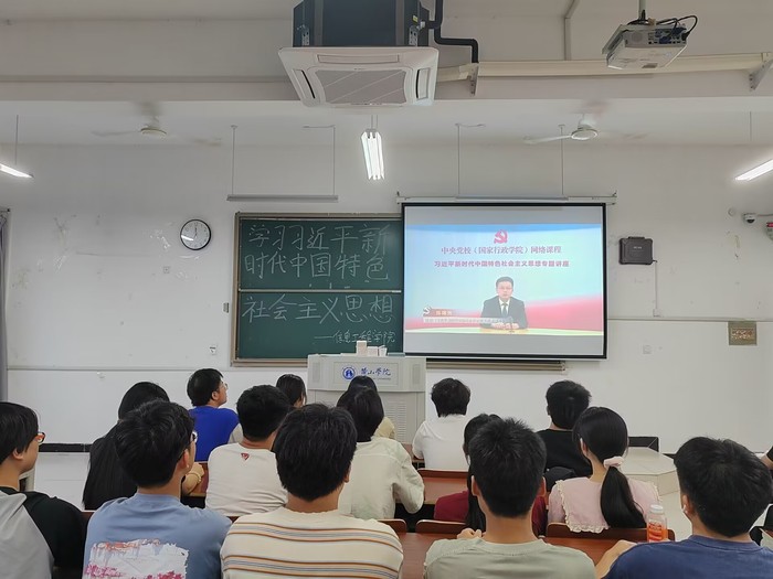 为深入学习贯彻习近平新时代中国特色社会主义思想,扎实推进“学习二十大 永远跟党走 奋进新征程”主题教育实践活动,6月10日,太阳成集团tyc9728组织团学骨干在文端楼2410集中观看了由中共中央党校(国家行政学院)马克思主义学院副院长陈曙光教授主讲的《习近平新时代中国特色社会主义思想概论》讲座,之后举办读书分享会。