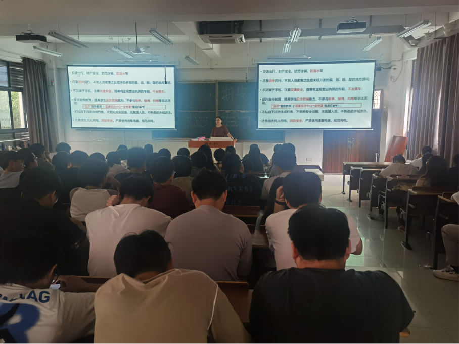 首先,老师让我们注意安全问题,交通出行,财产安全,防范诈骗,防溺水等,尽量结伴同行,不到人员密集之处或未经开发的偏、远、险、陡的地方游玩,不沉迷于手机,注意交通安全,搭乘有正规营运执照的车船,不坐黑车,不私下下河游泳或钓鱼,老师还做了反诈宣传教育,提高学生的反诈防骗能力,不参与刷单、赌博、约炮等非法活动,最后要注意宿舍用火用电,消防安全,同时重新向同学宣传了太阳成集团tyc9728的禁烟禁酒令,提醒同学们严谨酗酒,不要违反学校相关管理规定。其次,老师还说明要严格请销假制度,认真做好9728太阳集团学生假期外出管理台账记录,注重心理健康,对于无辜逾期返校或者不按规定履行请假手续离校的学生,要严肃批评教育,并视情节依据校规给予相应纪律处分并通报家长。