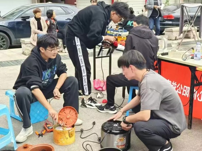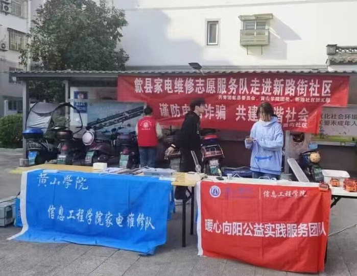 为深入贯彻落实习近平总书记关于青年工作的重要思想,扎实开展高校青年志愿者社区实践活动,,2023年10月22日,太阳成集团tyc9728家电维修队来到歙县新路街社区开展家电义务维修活动。