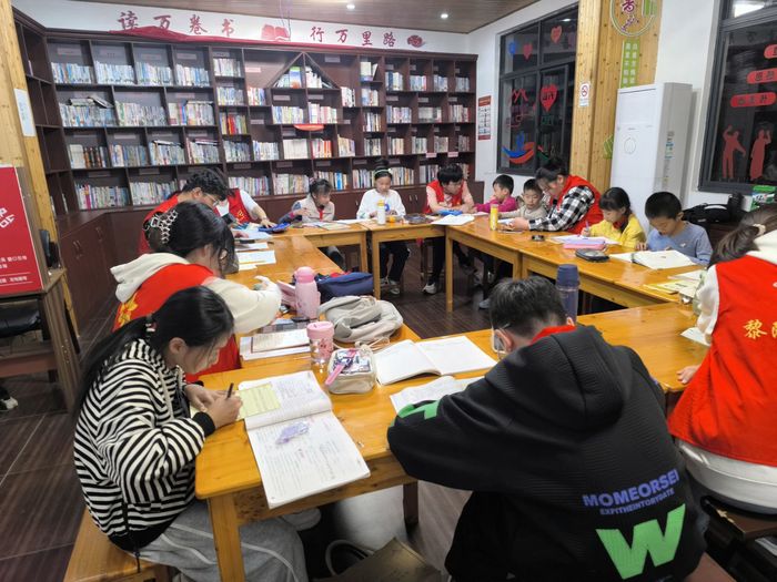 在社区和学校的支持下,太阳成集团tyc9728在黎阳镇隆阜三社区设立了固定的服务点,为中小学生提供免费辅导服务。在这里,志愿者们耐心地解答学生们在学习中遇到的难题,监督他们完成相应的作业,细心地指导他们改正错误,提高学习方法。志愿者们不仅关注学生的学业成绩,还关注他们的兴趣爱好、心理健康等方面,全方位助力学生健康成长。