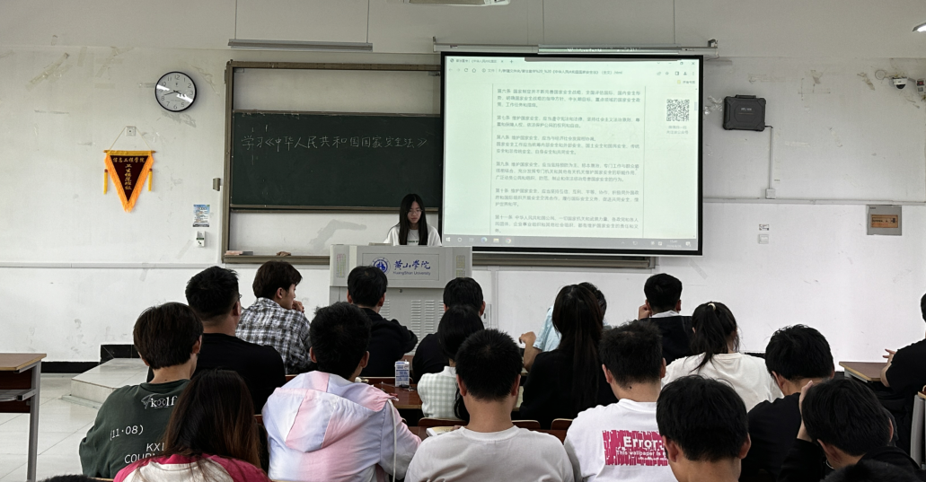 为了深化同学们的安全意识,提升同学们对国家安全重要性的认识。23电子2班4月26日晚20:00在文渊楼1106开展了学习《中华人民共和国国家安全法》主题活动。