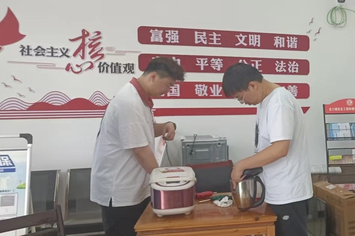 志愿者们不仅帮助村民修理存在故障的电器,在修理之余还会耐心向村民讲解关于家电日常维修、保养的小知识,提醒他们在平时使用电器时的注意事项,向居民演示使用家电时的正确操作,避免家电出现不必要的故障。在志愿者热情细致的服务下,岔口村村民拿着修好的电饭煲、电磁炉、电水壶等家电,露出了满意的笑容,并为本次志愿服务的高效点赞。