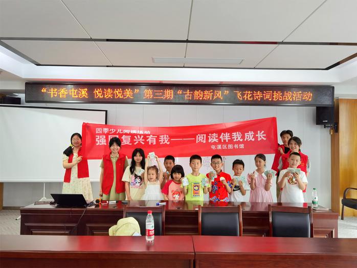 5月26日,一场富有中国传统文化气息的活动——“古韵新风”诗词飞花令,在黄山市屯溪区图书馆隆重举行,这是“书香屯溪,悦读阅美”系列活动的第三期。这一活动旨在通过互动游戏的形式,让参加活动的小读者们深入体验中国古典诗词的魅力,传承中华文化的精髓。