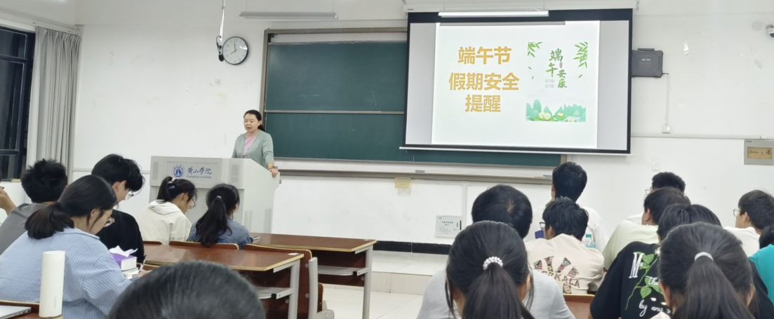 班级干部根据辅导员的指导给班级同学开展相关主题班会。班会分两部分,第一部分端午假期安全防范意识教育:出行安全教育——提醒同学们尽量结伴同行,不到人员密集之处或未经开发的偏、远、险、陡的地方游玩;不要沉湎于手机,注意交通安全,搭乘有正规营运执照的车船,不坐黑车;不从事非正规单位发布或来路不明的兼职,不参加非法集会与游行,尤其要增强对传销、电信诈骗等防范与抵制意识。防溺水宣传——天气渐暖,学校临近率水和横江,校园内也有多处水域,做到不独自到水边游玩、戏水或钓鱼,不擅自与他人结伴戏水、游泳,不到无安全设施、不熟悉的、无救援人员的水域戏水、游泳,避免引发安全事故。强化饮食安全教育——提醒同学们在外出时,尽量避免前往卫生条件难以得到保障的校外摊点就餐,以防止食物中毒、疾病传染等潜在风险的发生。最后,提醒同学们尽快填写端午假期出行台账。第二部分为考试诚信教育:今年的高考正值端午假期。教育每位同学充分知晓充当“枪手”、参与高考作弊的严重后果,另外,马上也临近专业课程期末考试,希望同学们认真复习和备考,树立正确的考试观念,自觉抵制违法违纪作弊行为,共同营造诚信、守法守纪的考试氛围,顺利通过期末各项考试。