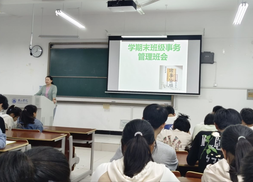 根据自身专业课程安排,利用课余时间辅导员柳老师分不同时间段带领21光信息、21软件工程、23软件工程专业全班同学开展了学期末班级管理事务主题班会。会议由辅导员柳老师主持。