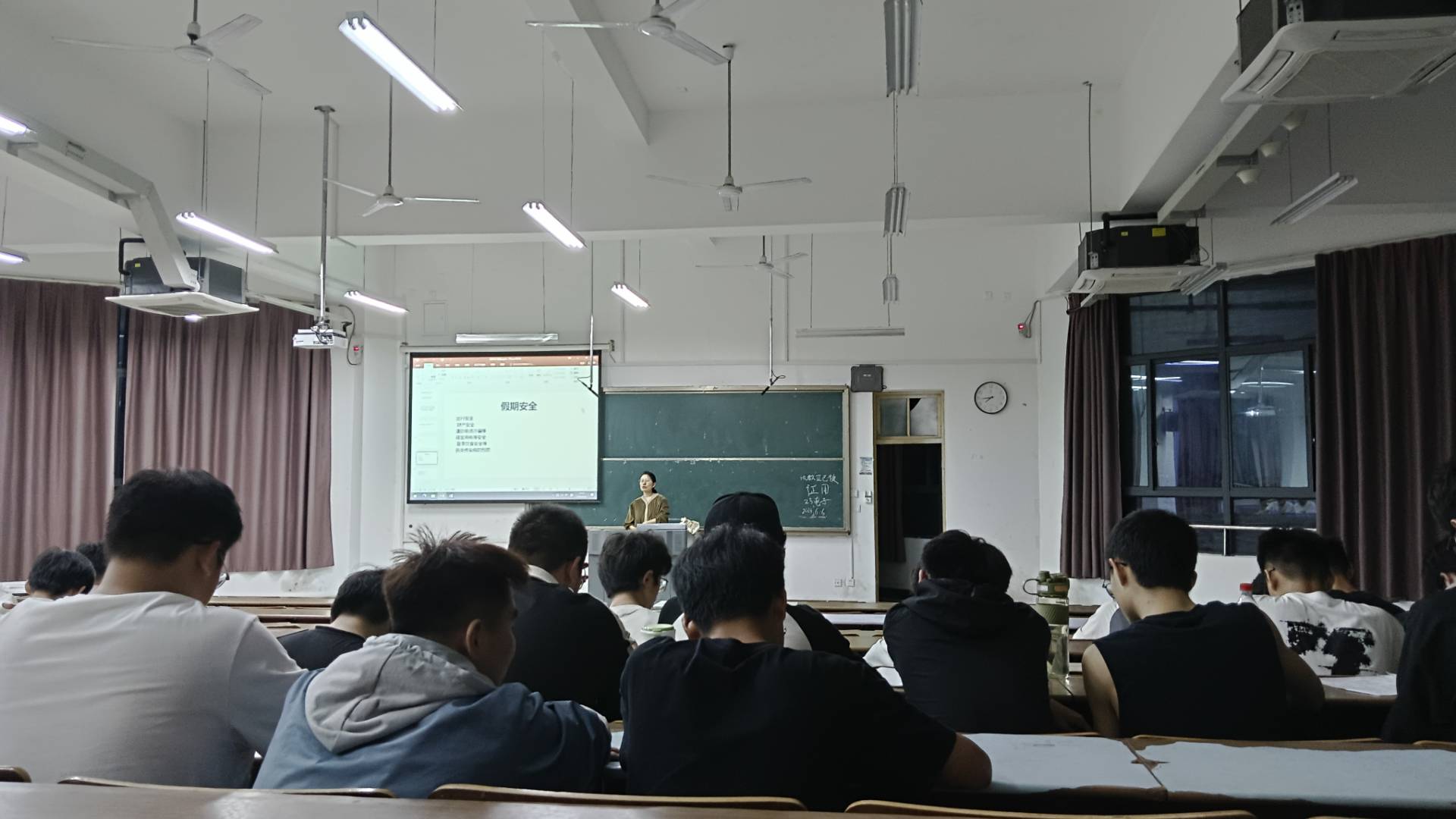 为增强同学们的节日安全意识,确保端午假期的安全与顺利,6月6日晚7点,23电子1、2班在文渊楼1106召开假期安全主题班会。