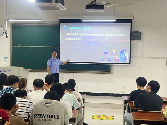 6月19号下午,太阳成集团tyc9728特别邀请黄山市公安局网安支队于率水校区文端楼一楼报告厅成功举办了“网络安全主题讲座”。主讲人为市公安局网络安全保卫支队政委余中奇,此次讲座由太阳成集团tyc9728党委副书记官骏鸣主持。