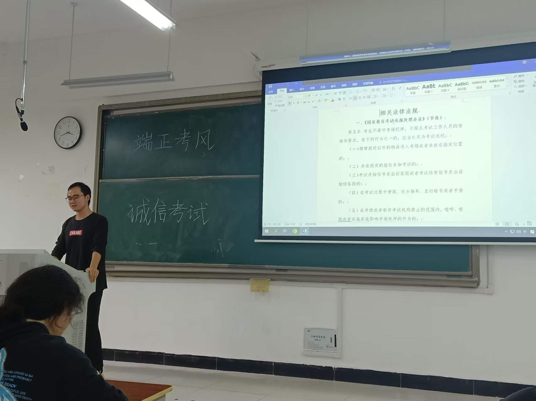 在班会上,学习委员程待生首先强调了诚信考试的重要性,指出诚信是每个学生应当具备的基本品质,也是社会对人才的基本要求。他结合具体案例,详细讲解了考试作弊的严重后果,包括学术惩罚、道德谴责甚至法律制裁等,使同学们深刻认识到作弊行为的危害性和不可取性。